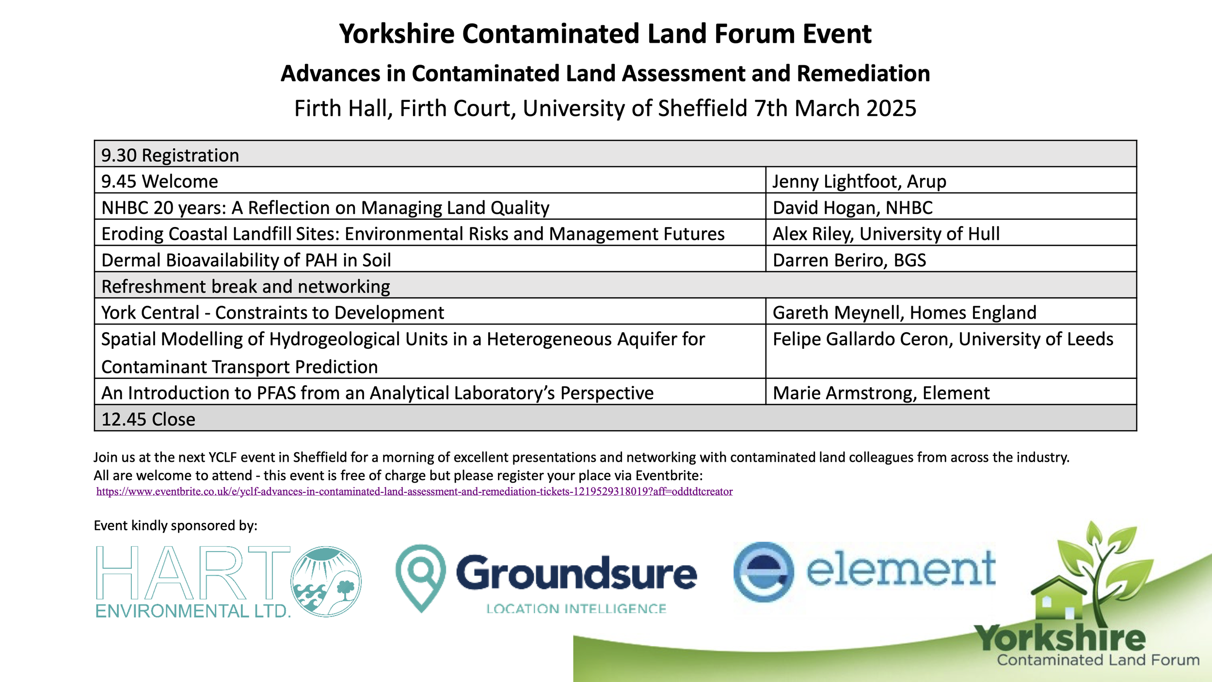 Join us for the next YCLF event | Friday 7th March 2025 at University of Sheffield, Firth Hall